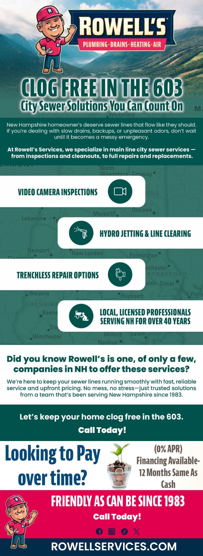 We're here to keep your sewer lines running smoothly with fast, reliable service and upfront pricing. No mess, no stress—just trusted solutions from a team that's been serving Meredith since 1983.